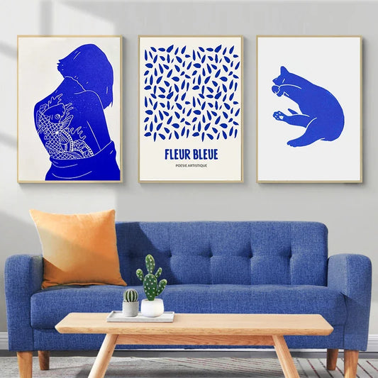 Arte da parete su tela astratta blu Klein stampa moderna verticale