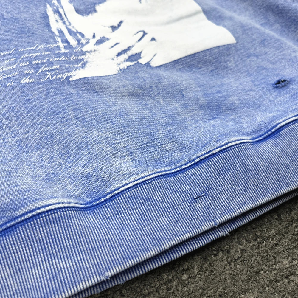 This oversized cotton hooded sweatshirt combines a relaxed dropped-shoulder silhouette with vintage wash and distressed detailing to create a streetwise, retro Y2K look perfect for autumn and winter. The soft, brushed cotton liner enhances comfort while the faded blue pigment and subtle print graphics add an authentic high‑street vibe. Distinct statue-inspired prints on the sleeves and chest give the hoodie a luxury-retro aesthetic that reads both nostalgic and modern. Ideal for fashion-forward men and anyone who loves unisex streetwear, this piece transitions effortlessly from daytime errands to late-night meetups.