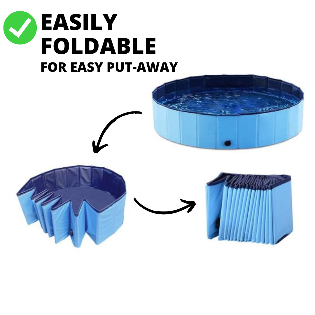 Piscina Pieghevole Pop-Up per Cani - Bagno e Piscina da Esterno per Animali, Estate 2025 Installazione Facile, Scarico Laterale, Rivestimento Durevole mantiene il tuo cane fresco e pulito nelle giornate calde. Questa piscina Aqua Blue è disponibile in tre dimensioni e si apre in pochi minuti per un'installazione rapida, con scarico laterale e rivestimento resistente alle forature per una pulizia facile, senza disordine e un deposito portatile.