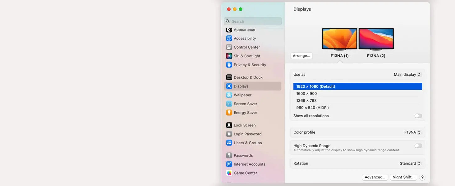 - 10-bit farge (8-bit + Hi-FRC) med 100 % DCI-P3-dekning for rik, nøyaktig farge