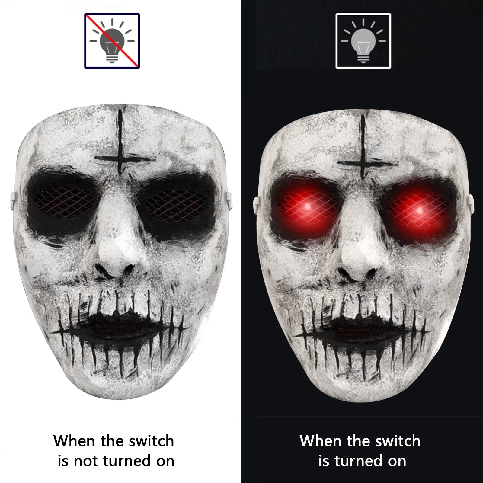 - Røde LED-øyne: Integrert LED-belysning i øyeområdet skaper et dramatisk, glødende rødt blikk (synlig i svakt lys)