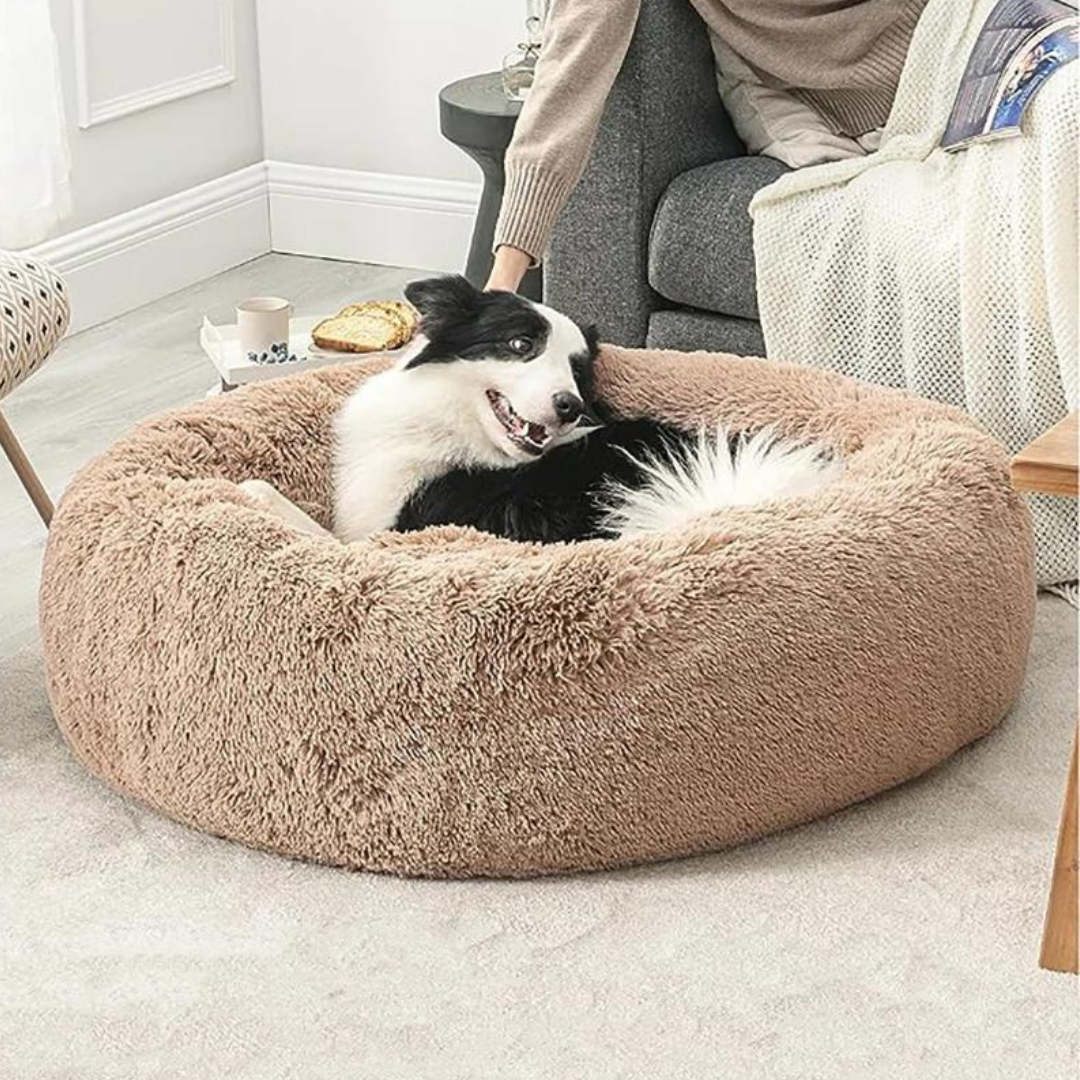 Beroligende hundeseng ultra myk koselig rede med forhøyet kant for avslappende søvn høst 2025 gaveidé