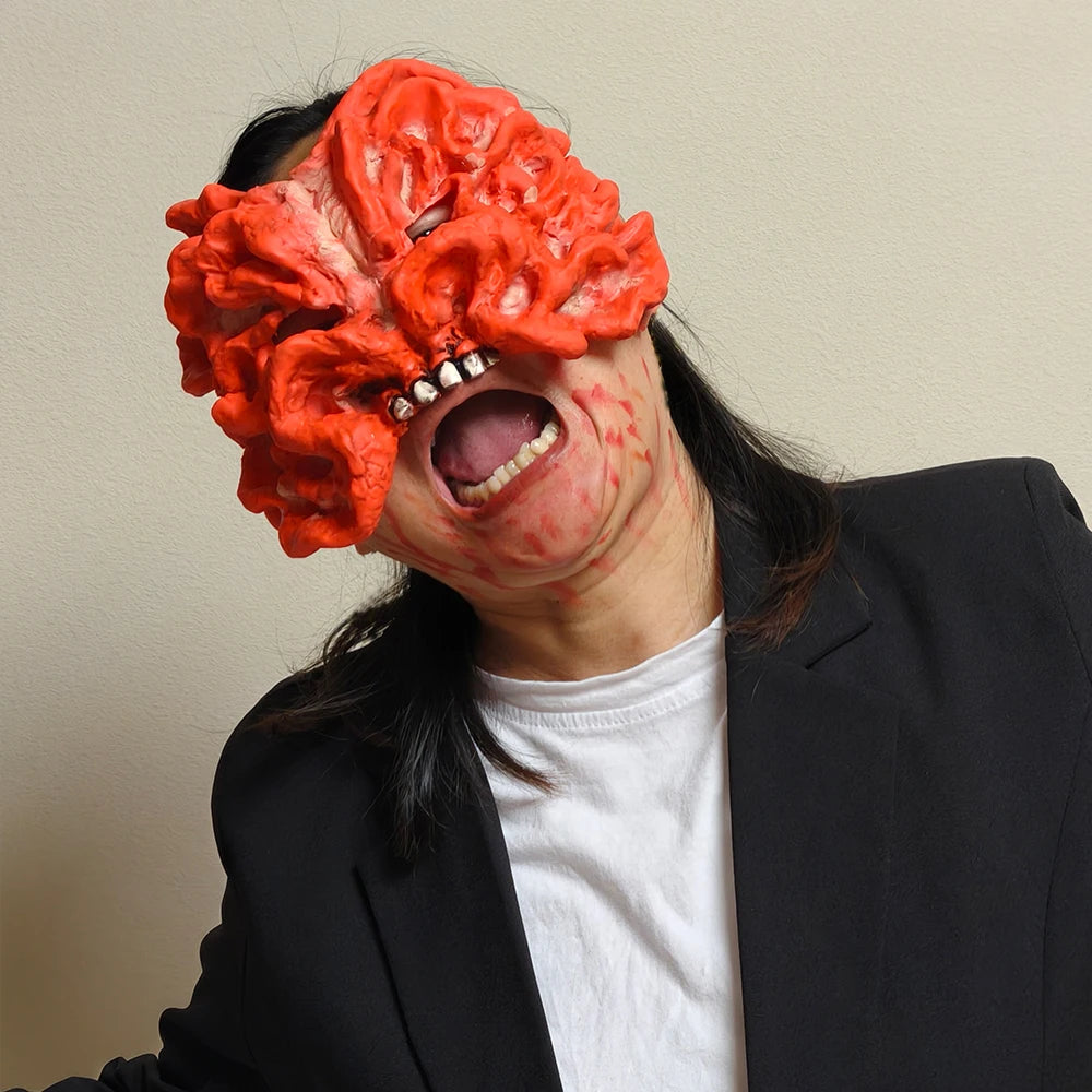 Zombie Maske Halvt Ansikt Sopp Cosplay Halloween 2025 Rekvisitt — En slående halvt ansikts gummimaske formet som en soppaktig, sopp-lignende zombievekst som dekker øvre del av ansiktet for et intenst cosplay- eller Halloween-utseende. Designet for voksne, denne unisex skrekk-rekvisitten gir en umiddelbar, iøynefallende karakteroppgradering for cosplay-arrangementer, hjemsøkte attraksjoner eller kostymefester.