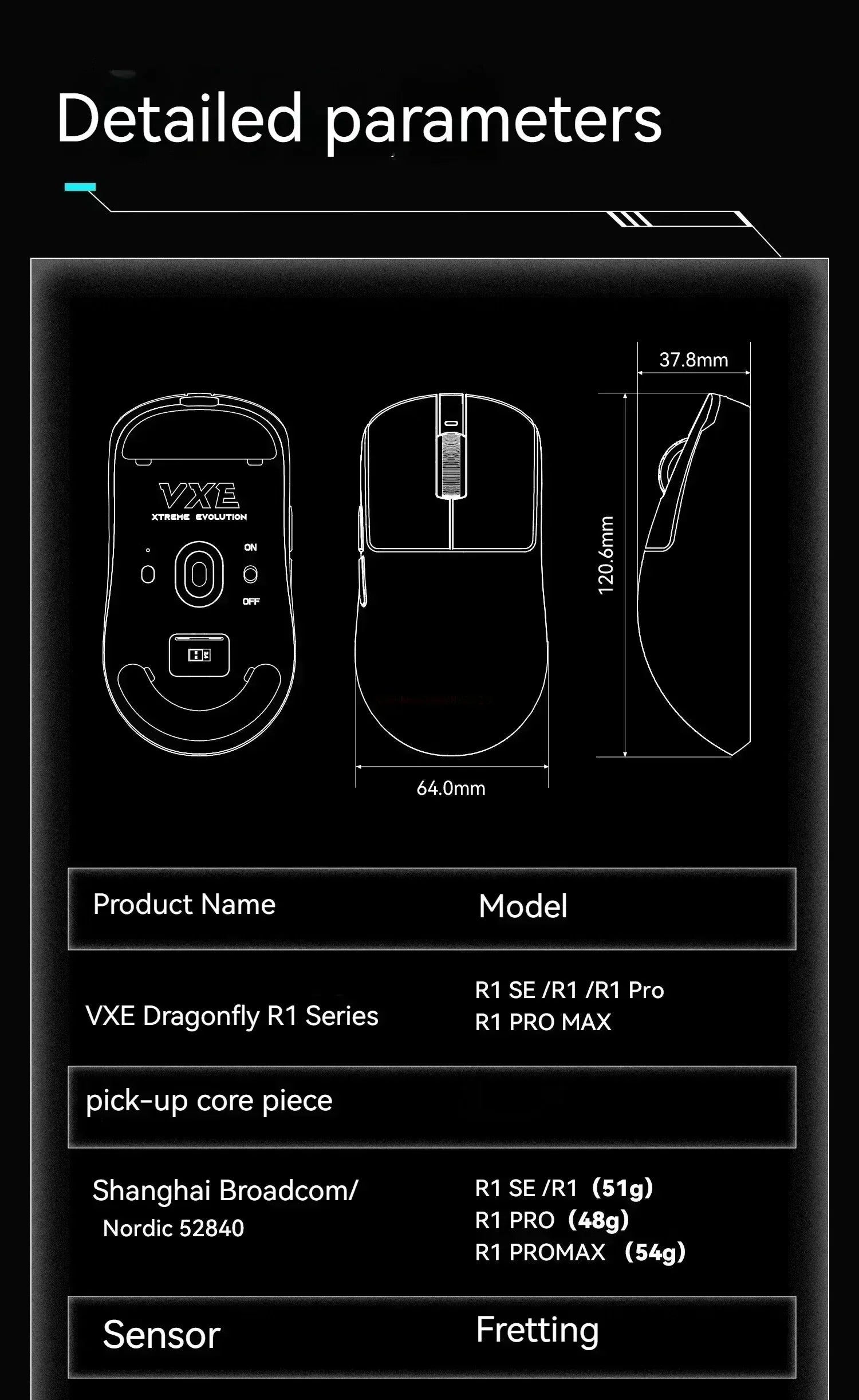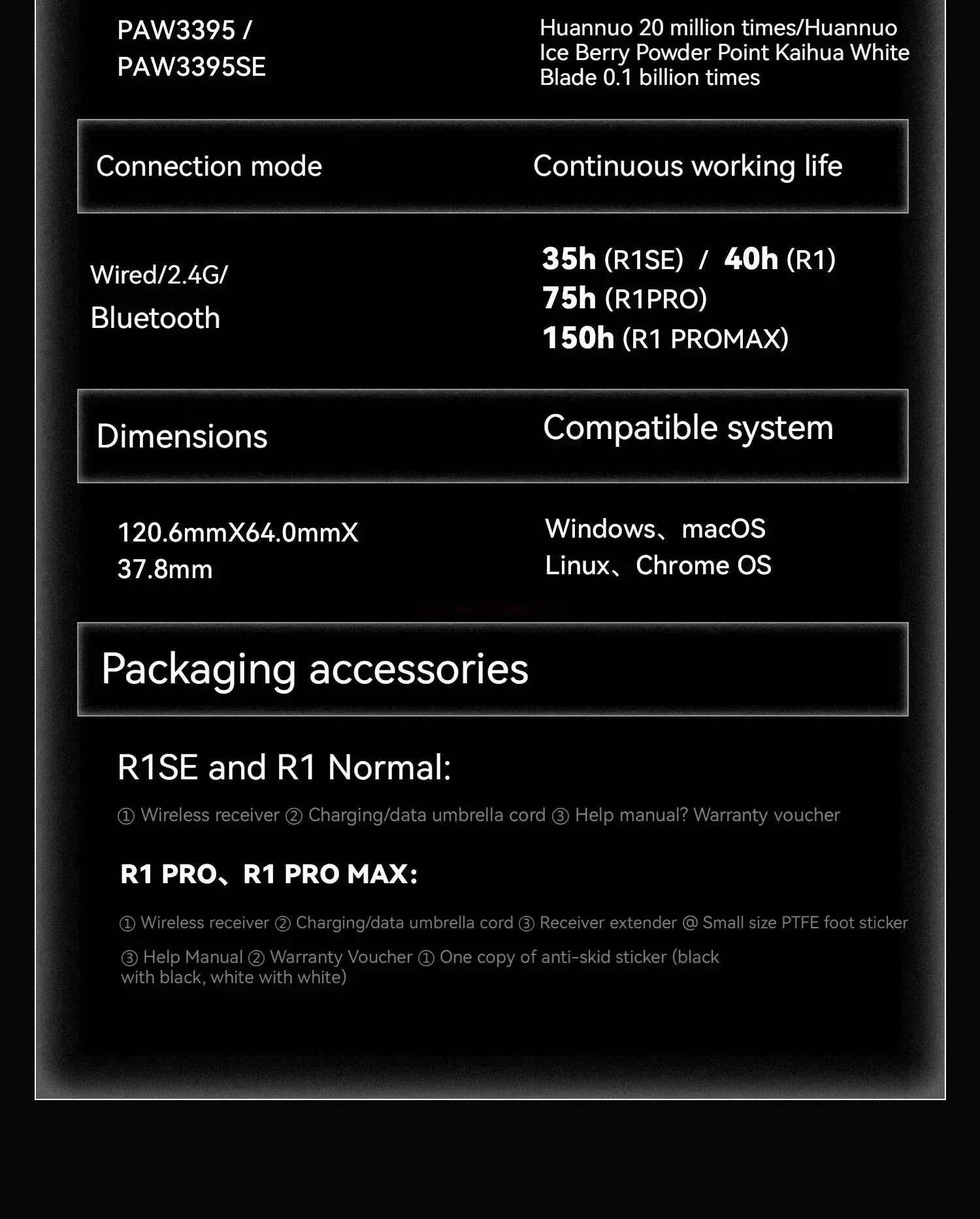 - Sensor & DPI: Pixart 3395 with up to 26000 DPI, 650 IPS, 50G acceleration