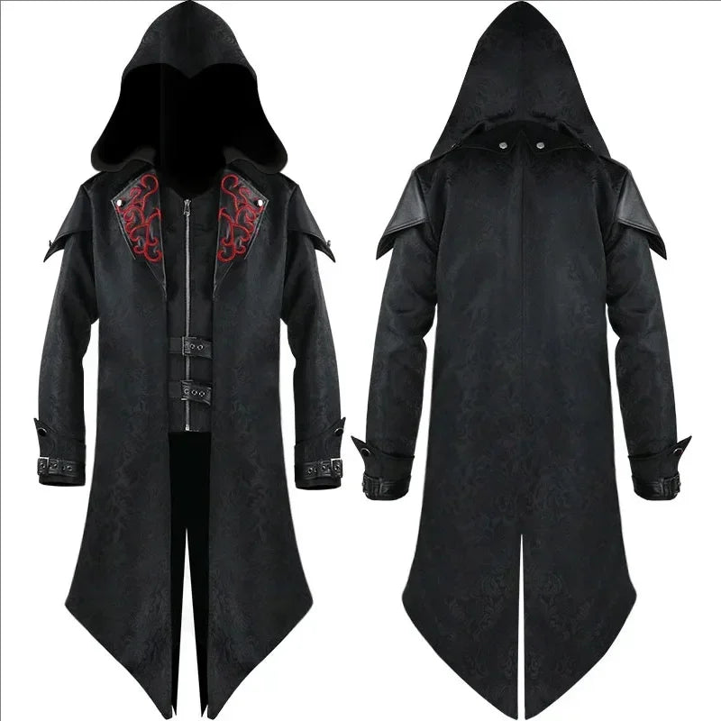 Den middelalderske snikmorder-hettejakken kostyme Halloween 2025 kombinerer en lang, hetteformet silhuett med asymmetriske haler og spenneaksenter for et mørkt, periodeinspirert utseende. Designet for voksen unisex-bruk, tilbyr denne polyesterjakken et særegent kostymestykke som passer for Halloween-arrangementer og temafester.
