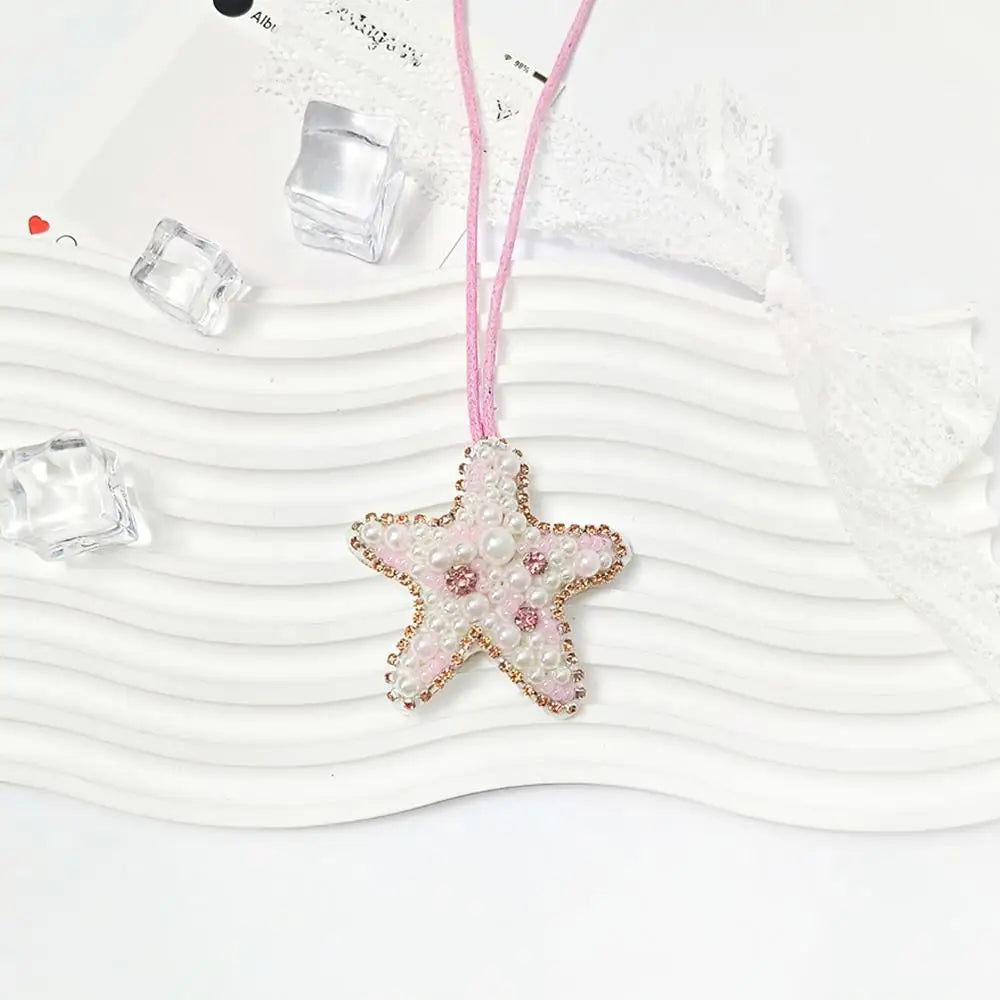 - Tropiske motiver inkluderer en kokosnøttpalme, konkylieskall og sjøstjerneperler for en strandaktig appell.