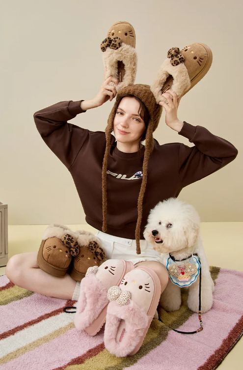 Denne tøfler kombinerer en koselig faux-pelsmansjett med en myk, avrundet silhuett for å skape et varmt, moteriktig utseende perfekt for kjølige høst- og vintermorgener. EVA-overdelen og yttersålen gir lett støtte, mens det broderte tegneserieansiktet og sløyfedetaljen tilfører et lekent, kawaii preg. Den på-sklis designen og den sydd konstruksjonen øker holdbarheten og hverdagskomforten, noe som gjør den ideell for avslapning hjemme, som gave eller til avslappet innendørs bruk. Med en sjarmerende estetikk som blander søt Sanrio-inspirert design og praktisk vintervarme, føles denne tøfler både trendy og tidløs.