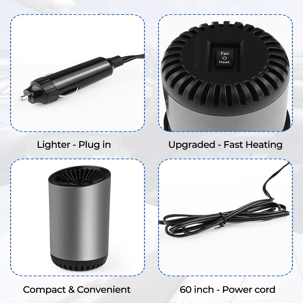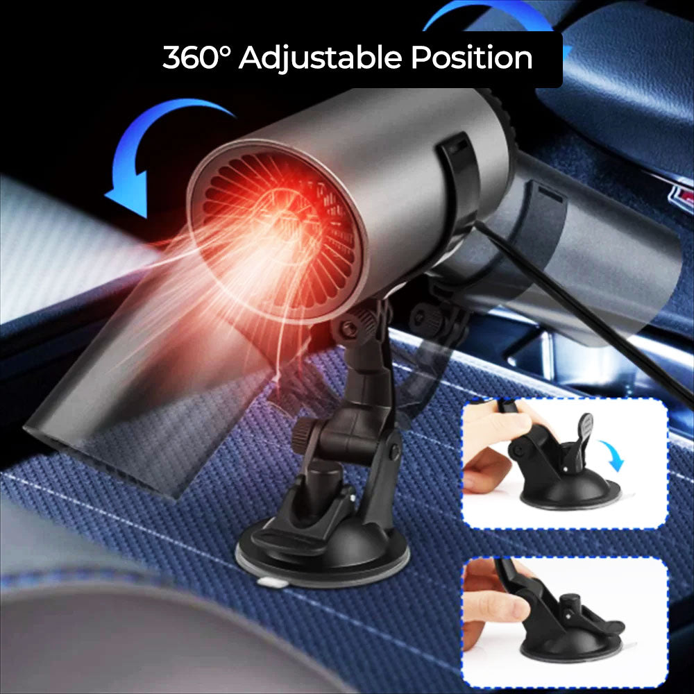 Rask oppvarming frontrutedefroster tiner opp frontruten din på under 30 sekunder, og gjenoppretter sikten raskt og trygt. Den 360° justerbare roterbare pluggen gir fleksibel posisjonering for bruk i biler, SUV-er, bobiler og lastebiler. Denne kompakte defrosteren gir rask og pålitelig frontruterenser når du trenger det mest.