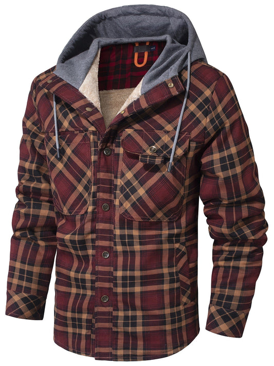 Geïsoleerde Comfortabele Heren Hoodie Jas - Geruite Fleece Voering
