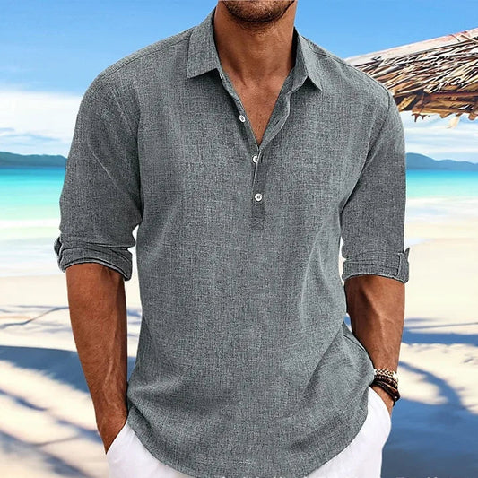 Lichtgewicht linnen strandhemd voor heren, ademende zomerse casual kleding, ontspannen pasvorm