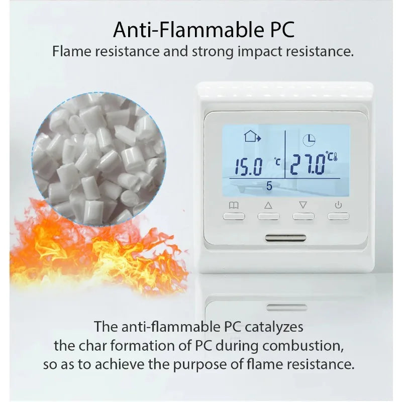2024 Nieuwe WiFi Programmeerbare Thermostaat voor vloerverwarming biedt nauwkeurige controle voor elektrische vloerverwarmingssystemen tot 220V en 16A. Beheer comfort overal met APP-afstandsbediening en pas schema's en temperaturen aan met een duidelijk digitaal display. De compacte, brandvertragende PC-behuizing is ontworpen voor veilige binneninstallatie.