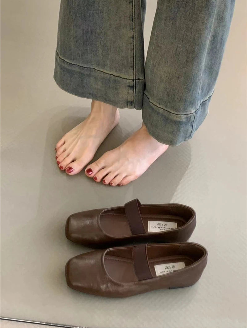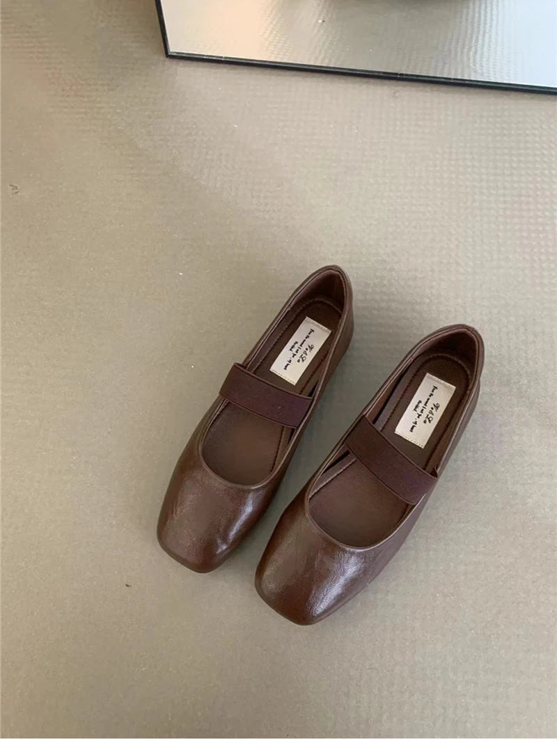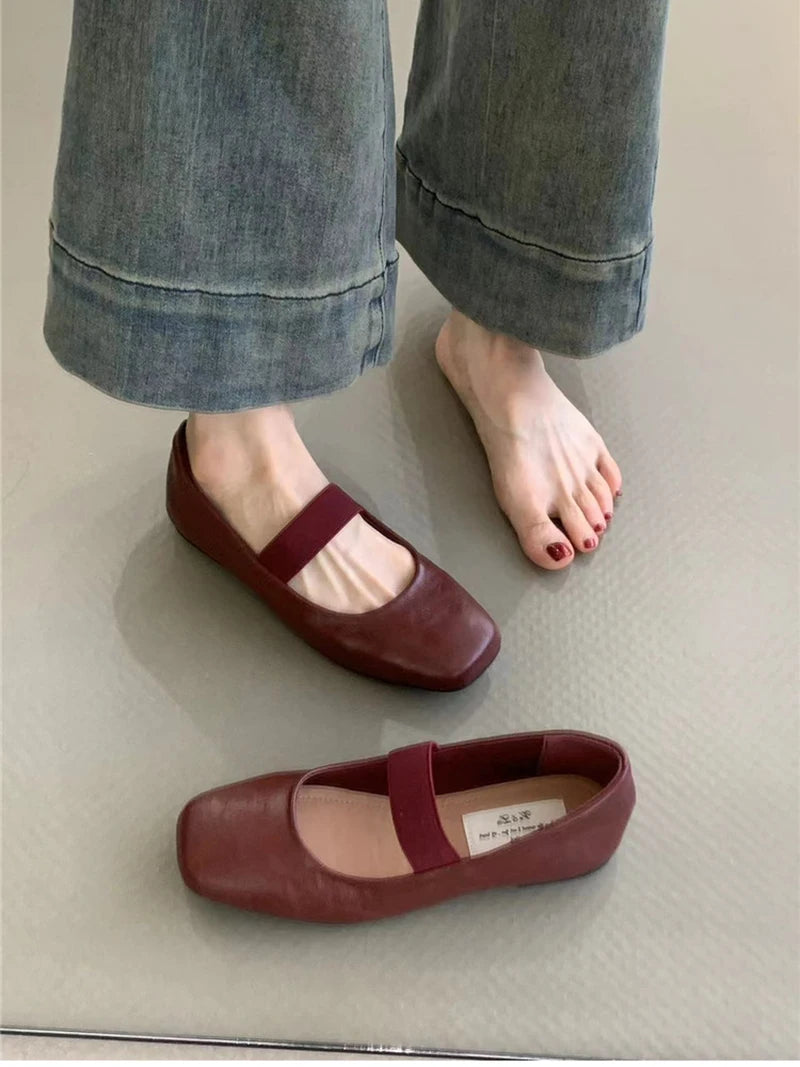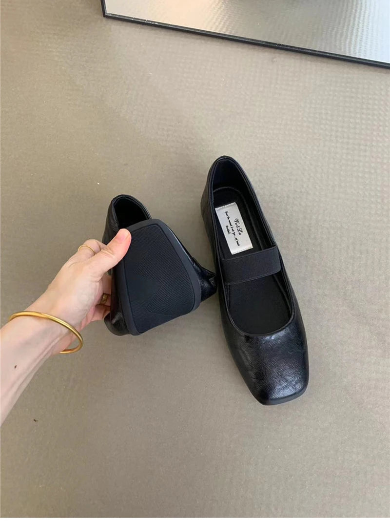 Dit paar ballerina's met vierkante neus combineert een modern vierkant-neus silhouet met een ondiepe Mary Jane snit en elastische band voor een verfijnde, modieuze look die perfect is voor lente en herfst. De laagprofiel zachte zool en gevoerde EVA binnenzool verhogen het comfort voor de hele dag, terwijl het minimalistische bovenwerk en de strakke lijnen een eigentijdse, vrouwelijke uitstraling geven. Ideaal voor dagelijkse stadsoutfits en casual kantoorlooks, deze veelzijdige ballerina gaat moeiteloos mee van dagelijke boodschappen tot avondbijeenkomsten. Ontworpen voor vrouwen die comfort waarderen zonder stijl op te offeren, biedt het een ingetogen, chique esthetiek die bij alles past, van jeans tot jurken.