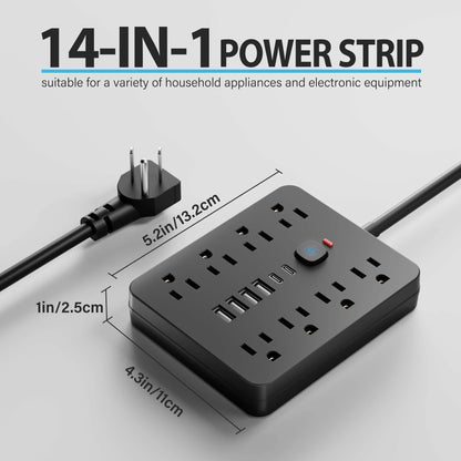 14-in-1 Power Outlet Surge Protector, 8 AC & 4 USB, Extension Cord for Desktop Charging