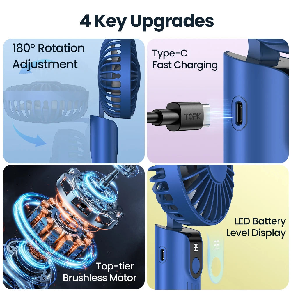 - Portable Handheld Design: Foldable at 90°, easy to carry, and can be used as a neck fan or desk fan.