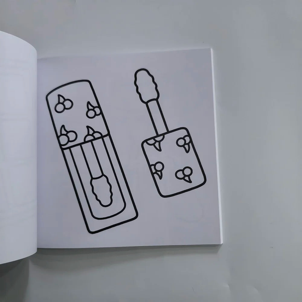 - Cosmetics-themed illustrations featuring makeup items like lipstick, nail polish, compact, and bottle imagery for everyday coloring fun.