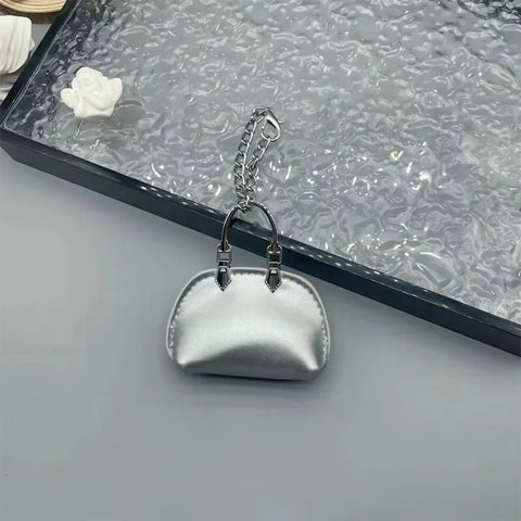 Introducing the Birkin Inspired Mini Hand Bag - Small Shell Coin Purse Charm Keychain, a stylish and unique accessory that adds flair to any outfit. This charming mini bag is perfect for those who love fashionable details, making it an eye-catching addition to your keychain or bag collection.