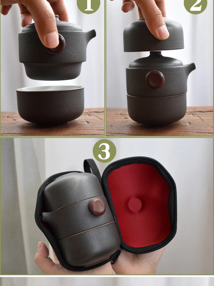 Discover the Ceramic Porcelain Teapot & Teacups Travel Office Kung Fu Tea Set, a handmade teaware collection designed for portable tea rituals. This compact set serves up to four and brings a traditional Kung Fu tea experience to your desk, hotel, or travel bag. The stackable design keeps the teapot and cups neatly organized for on-the-go tea moments.