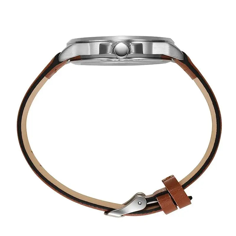 The Classic Field Watch offers rugged, everyday reliability with a 42mm round alloy case and a tan fabric strap featuring white stitching. Its analog display and 30-meter water resistance make it suitable for daily wear and outdoor activities, delivering practical style with military-inspired detail.