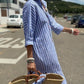 The Classic Striped Shirt Dress combines timeless elegance with modern sophistication, making it an essential addition to any woman's wardrobe. Designed for those who appreciate style and comfort, this dress features flattering vertical stripes and delicate lace trimming, perfect for various occasions.