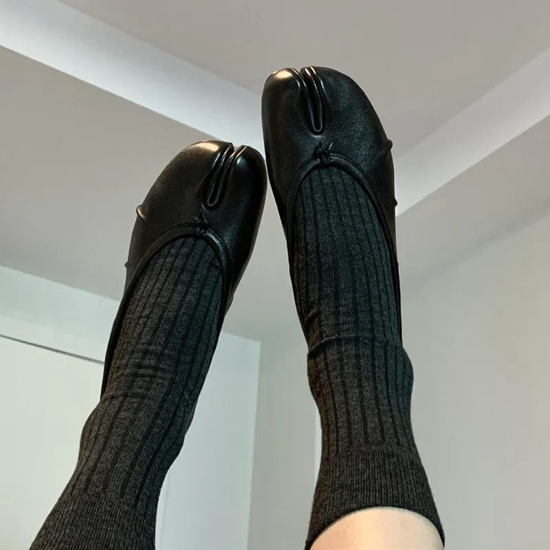 Soft Women Tabi Ballet Flats - Split Toe, Leather, Casual