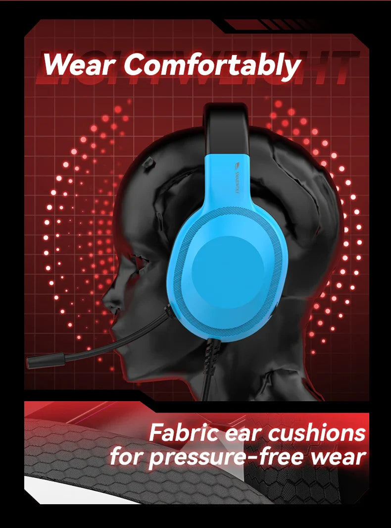The SMAILWOLF AK5 wired gaming headset delivers clear, immersive audio for desktop and laptop gaming. It combines comfort and performance with a fabric breathable earmuff, a 360° omnidirectional microphone, and a lightweight design for extended play sessions.