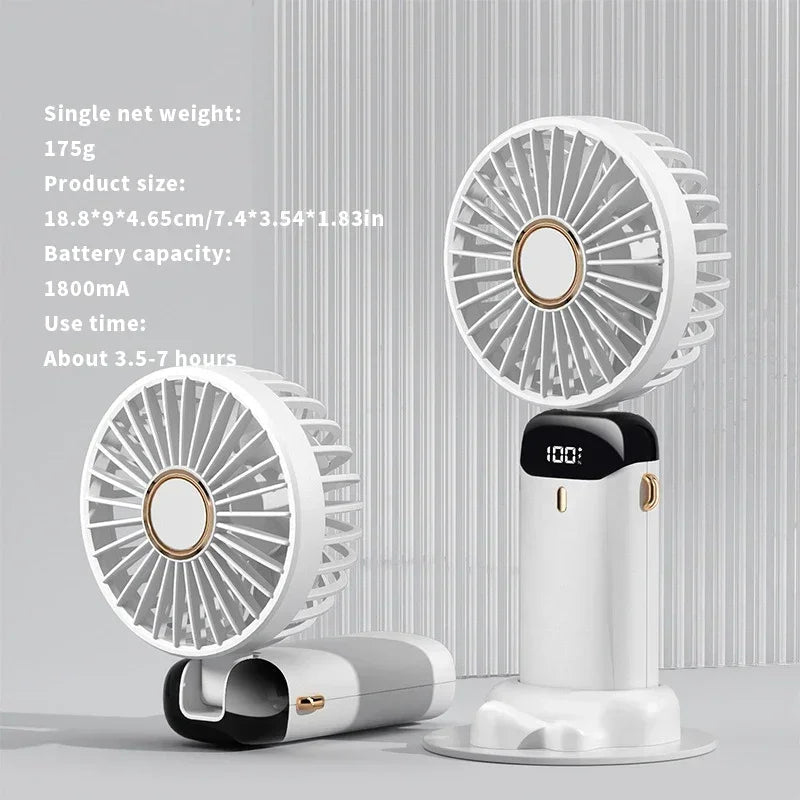 Handheld Mini Fan 3000mAh Portable USB Rechargeable Desk Fan 5 Speed Neck Hanging Outdoor Display Screen