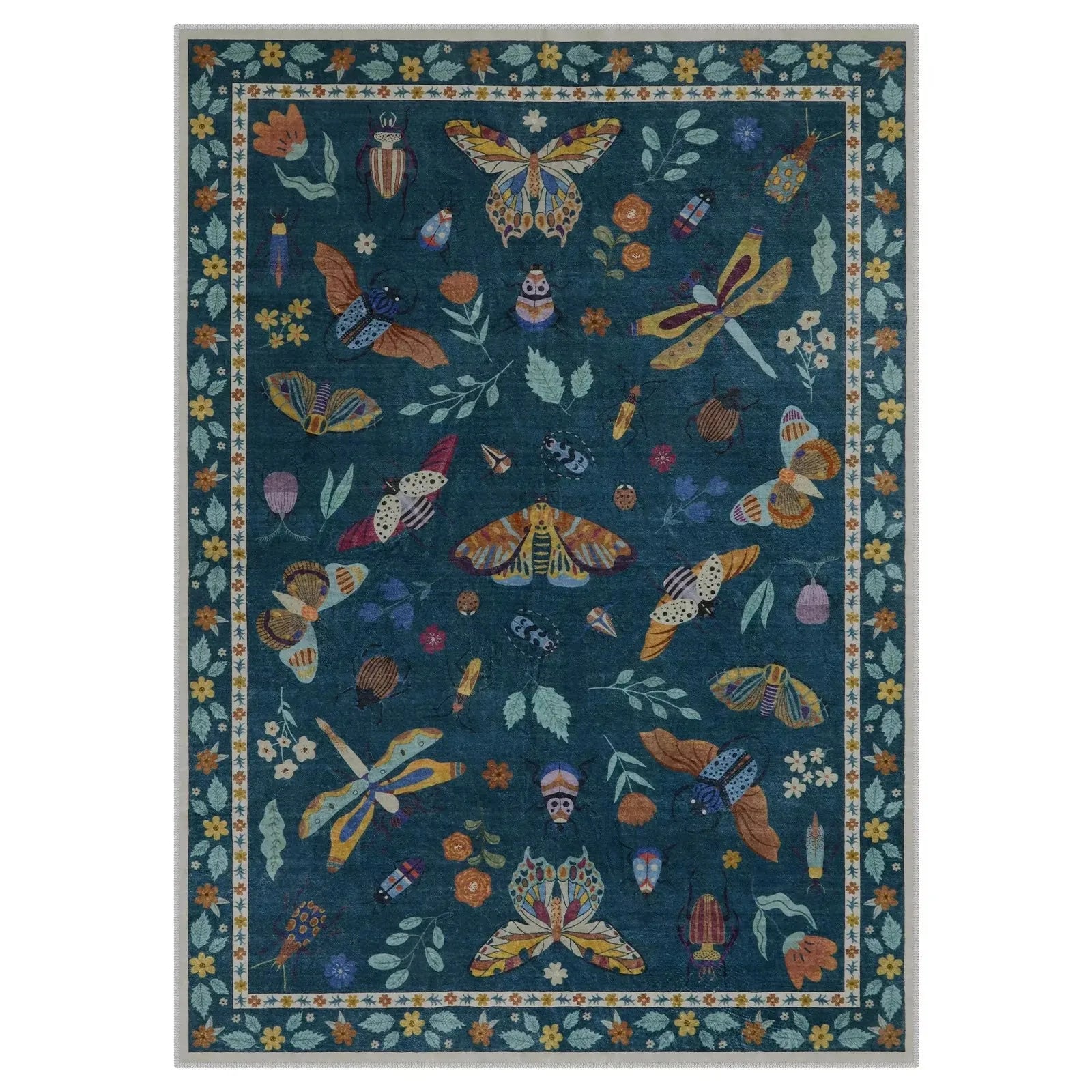 Add whimsy and color to your space with the Insect Print Area Rug. Made from 100% polyester and machine-made, it’s washable for easy care and designed to stay in place on indoor floors. The teal field with vibrant insect and plant motifs adds a modern, decorative touch to living rooms and bedrooms.