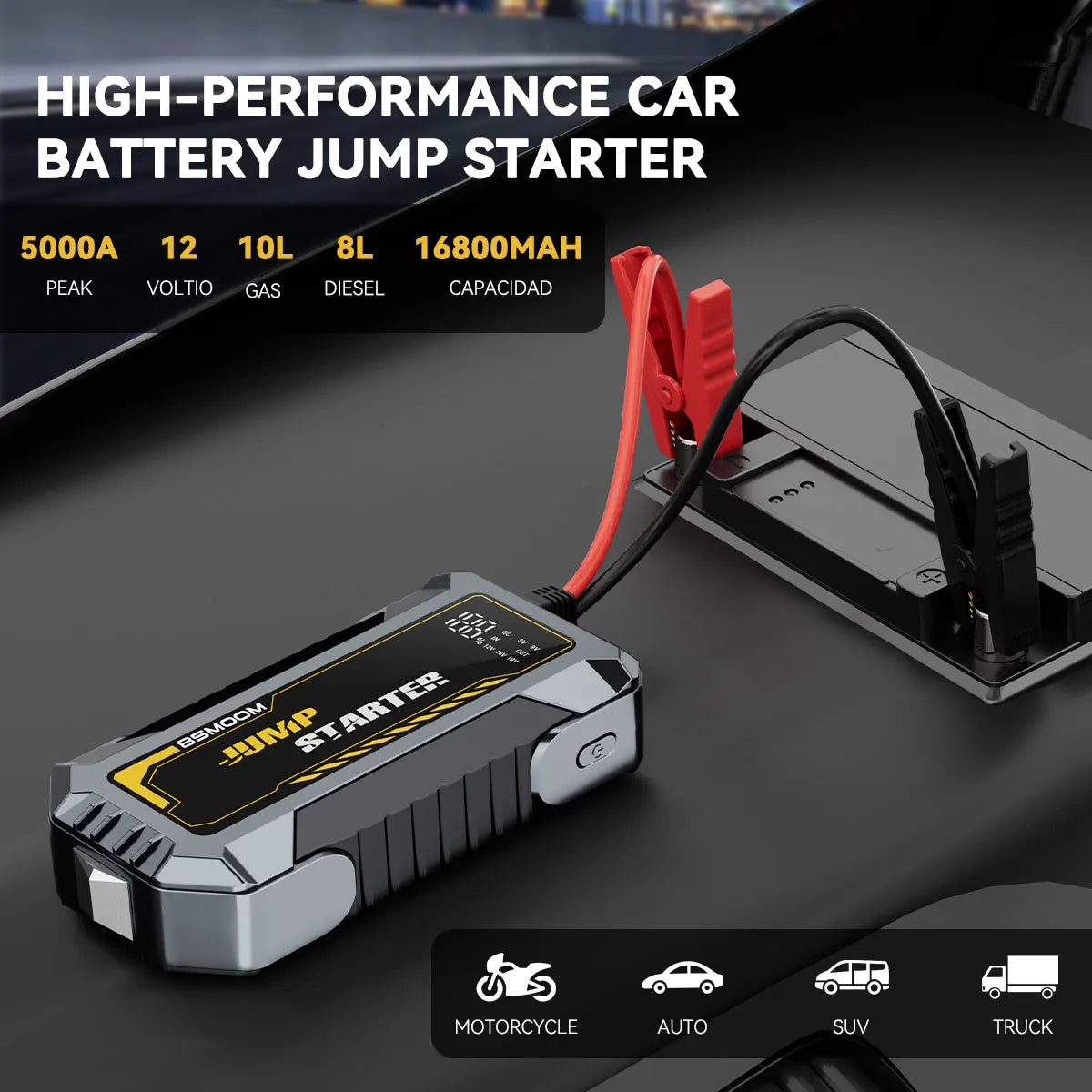 - Multi-function power bank: 12V jump start, USB charging, and built-in lighting with SOS mode