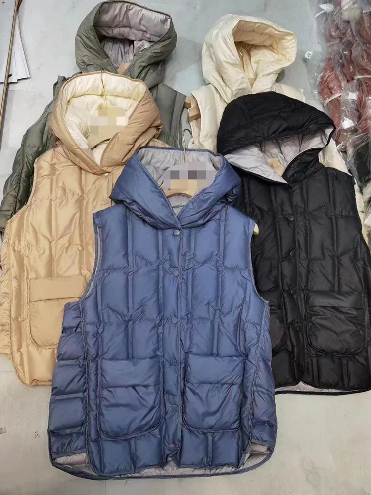 Lightweight Women Hooded Down Vest - Boxy, Down, Autumn