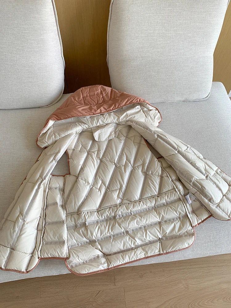 • Fabric: Shell: Polyester (composition ≥80% <90% polyester); Lining: Polyester; Filling: White duck down (stuffing percentage ≥80% <90%)