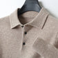Merino Wool Men's Lapel Pullover Sweater - Business Casual Long Sleeve Knit Top