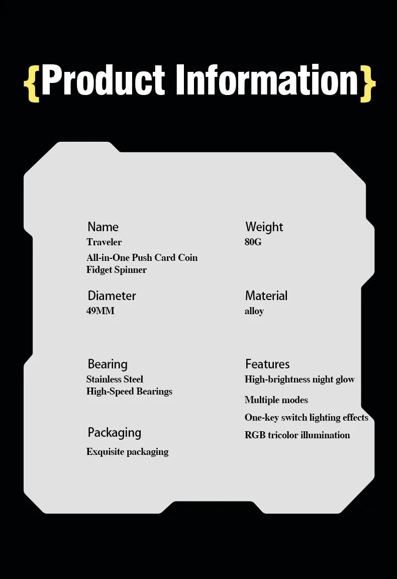 Experience focused fidgeting with the Metal EDC fidget spinner. This compact, metal toy delivers smooth rotation, a luminous glow, and a built-in card-pushing function for extra play options, making it a practical stress-relief companion for everyday carry.
