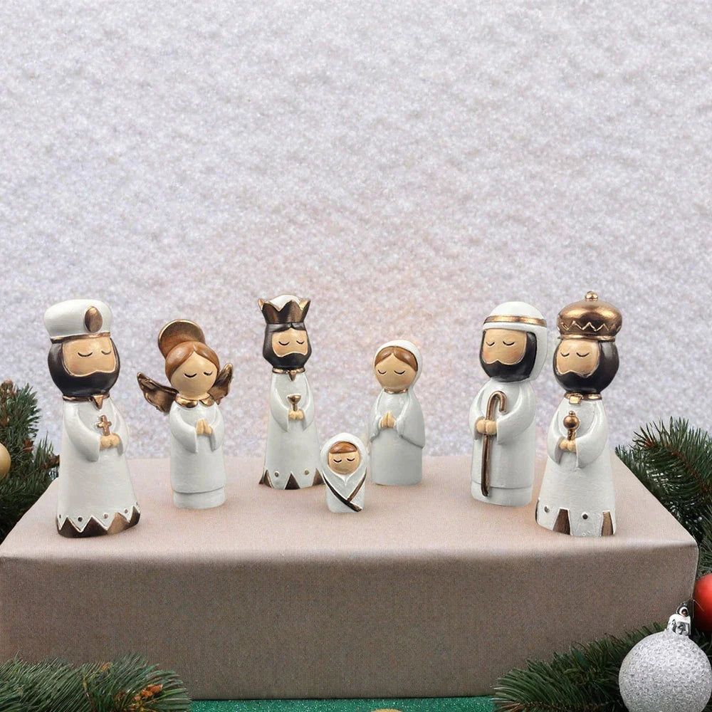 Nativity Set Resin 7 Piece White Gold Christmas Nativity Figurines For Tabletop Decor Holiday Gift Idea