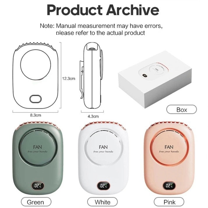 - Lightweight & Portable: Wear it around your neck for hands-free cooling while you're on the go.