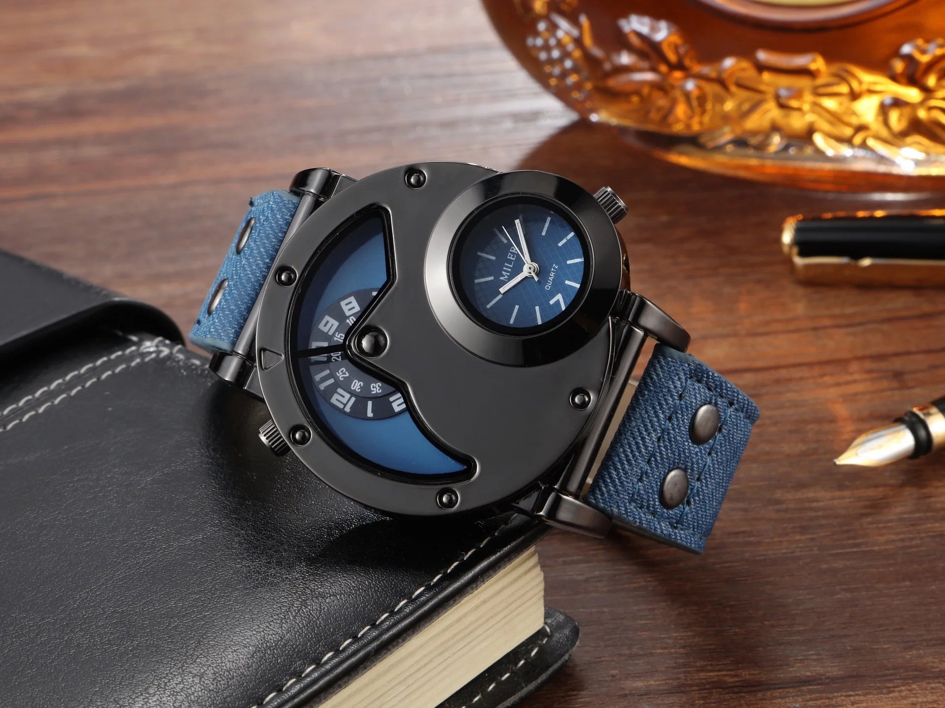 Is a fashionable outdoor men's quartz watch designed for a sporty, modern look. The irregular-shaped alloy case pairs with a fabric strap and a distinctive round sub-dial for a bold, contemporary timepiece. This versatile design works as an everyday accessory or a striking gift.