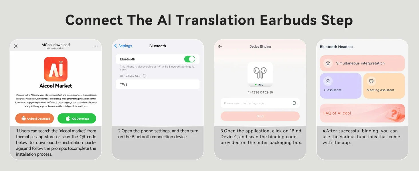Wireless Translator Earbuds Touch Screen Case 144 Languages