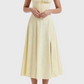 The Midi Bustier Corset Dress is the perfect addition to your summer wardrobe, designed to provide an effortlessly elegant look. With its flattering bustier corset top and midi length, this dress enhances your natural curves while offering a chic and polished appearance.Key Features
