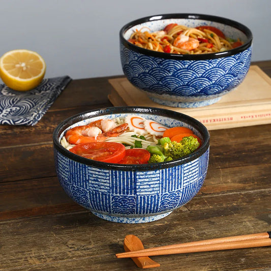 Qinghai Wave Nudelskål Handmålad Vintage Keramikskål