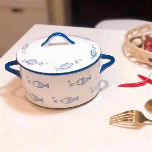 Keramisk 1000ml täckt nudelskål mikrovågssäker med lock