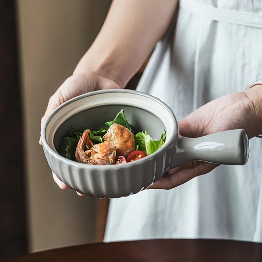 Omedelbar nudelskål i keramik med handtag och lock stor