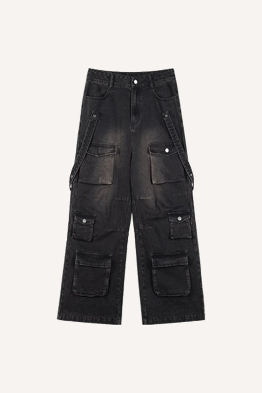 Svarta jeans i denim med figursydd skärning för gotisk stil och smickrande passform, bekväm vardagsklädsel