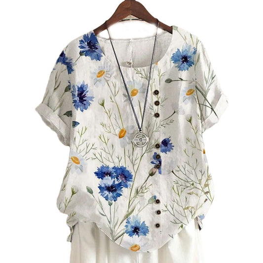 Andningsbar blus för kvinnor – avslappnad passform, bomullsblommigt tryck, för vardagsutflykter och speciella tillfällen