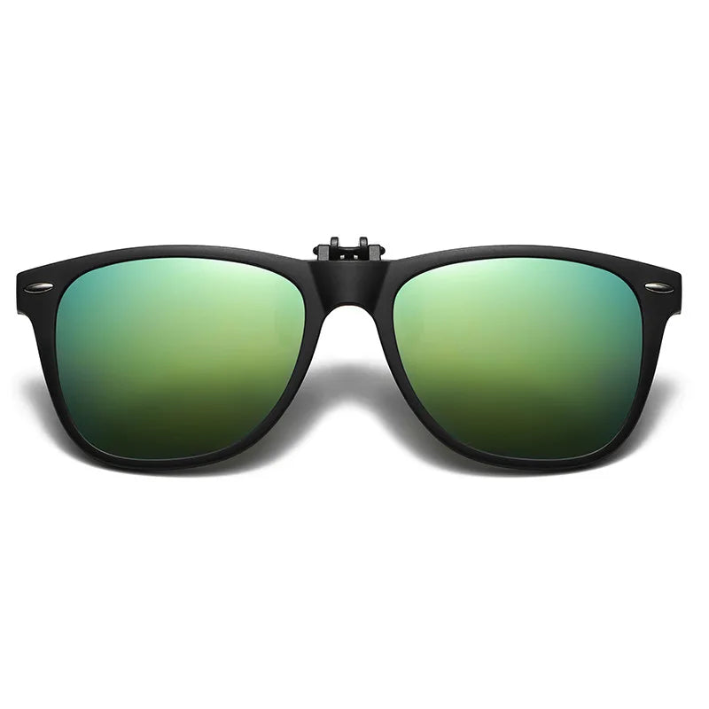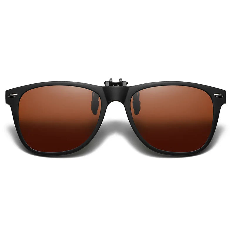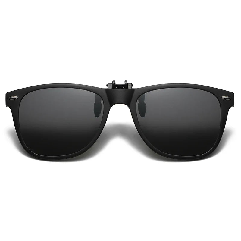 - Clip-on-designen möjliggör enkel fastsättning på dina befintliga glasögon, vilket ger ett bekvämt sätt att lägga till solskydd utan att behöva ett separat par.