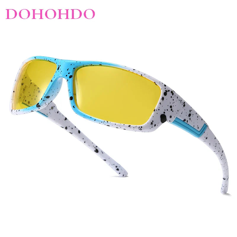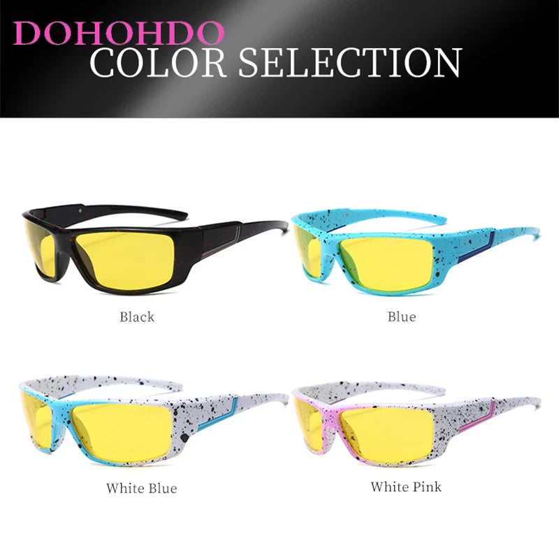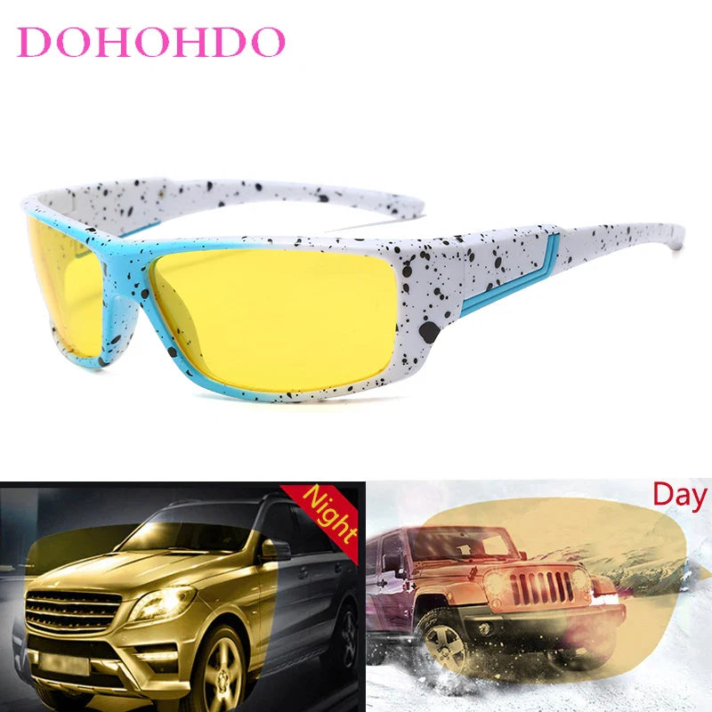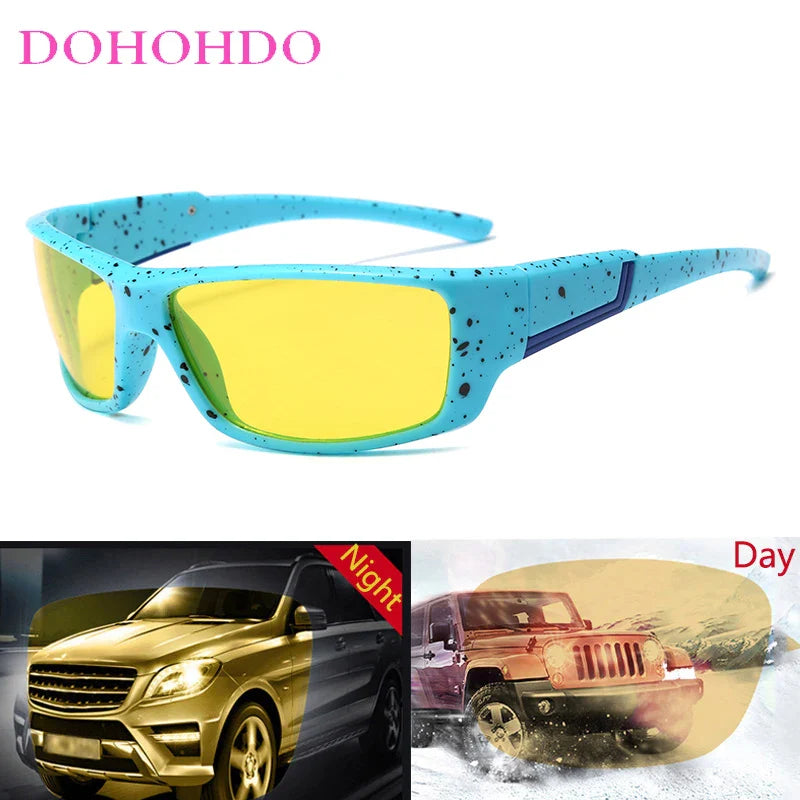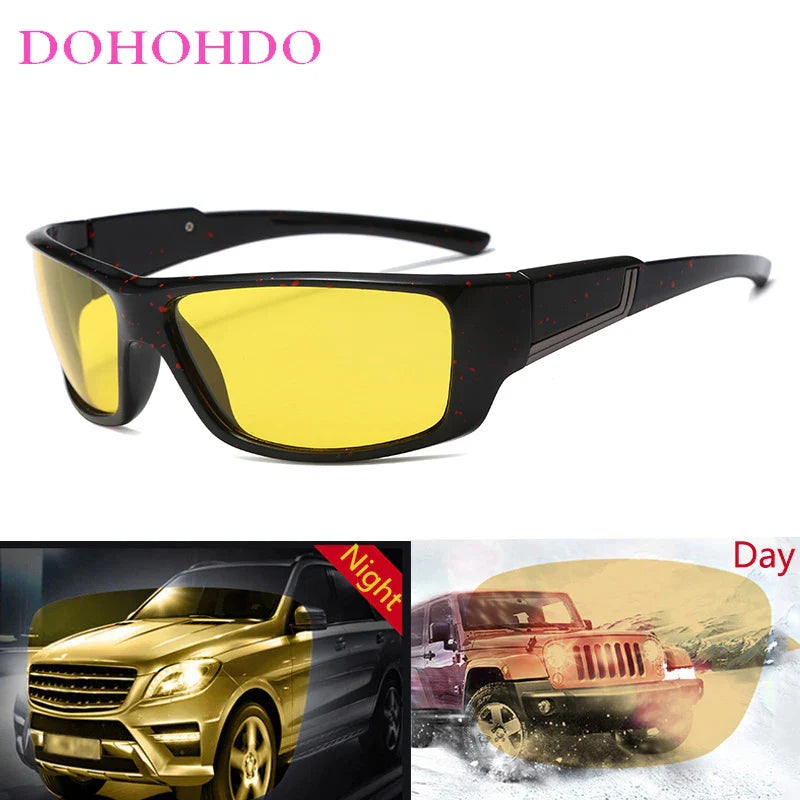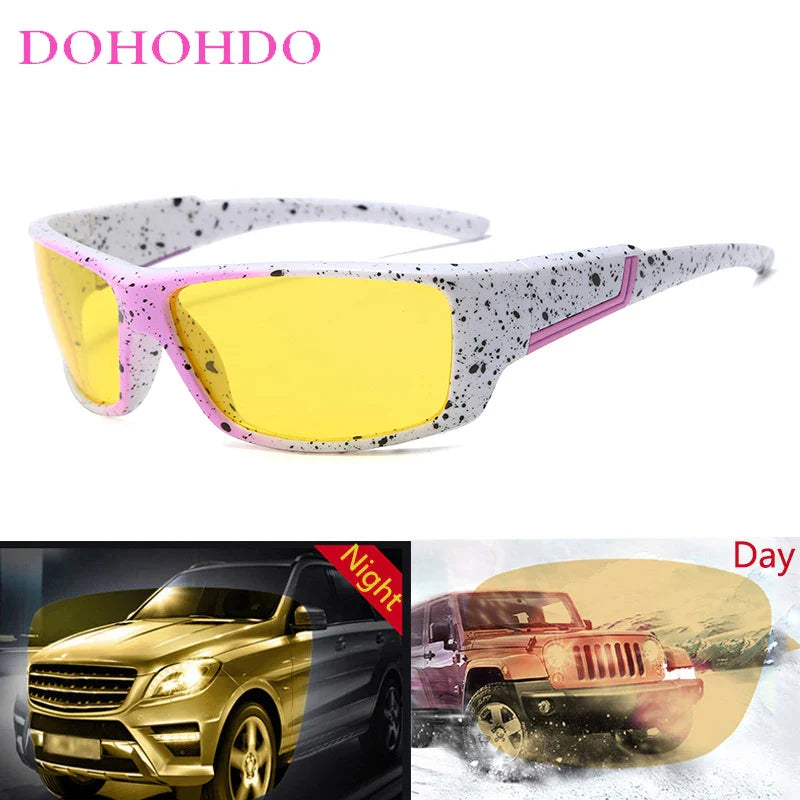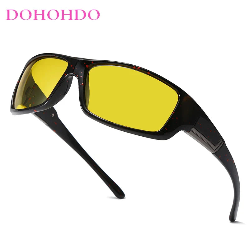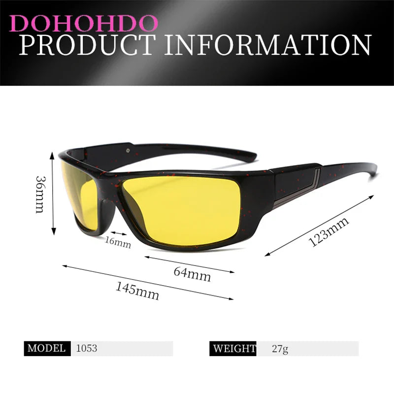 2025 Men Women Night Vision Glasses Polarized Sunglasses Yellow Lens Anti-Glare Goggle Night Driving Sun Glasses UV400 Eyewear är designade för att förbättra sikten både dag och natt. Med polariserade linser och gul toning minskar de bländning och förbättrar kontrasten vid nattkörning, medan UV400-skyddet skyddar mot solens strålar. En unisex-ram i acetat ger en bekväm, sportig look för cykling och vardagsbruk.