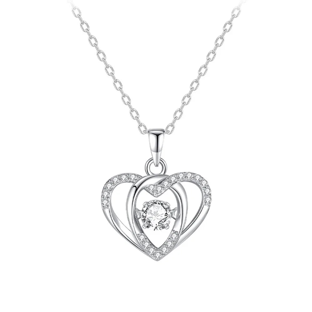 - Hjärtformat hänge med en strålande zirkon i mitten och gnistrande detaljer längs hjärtats kontur.