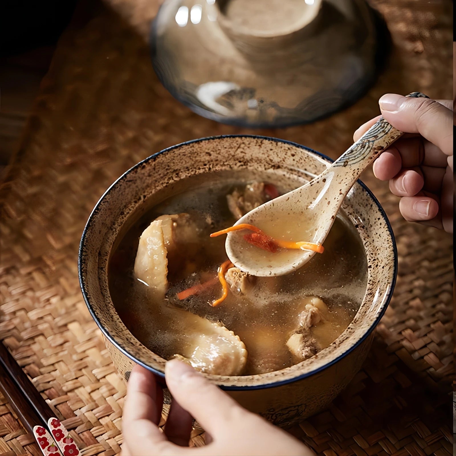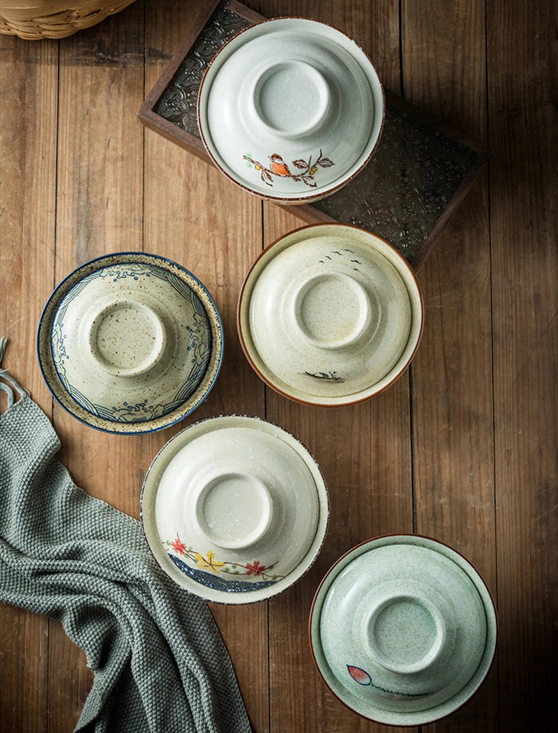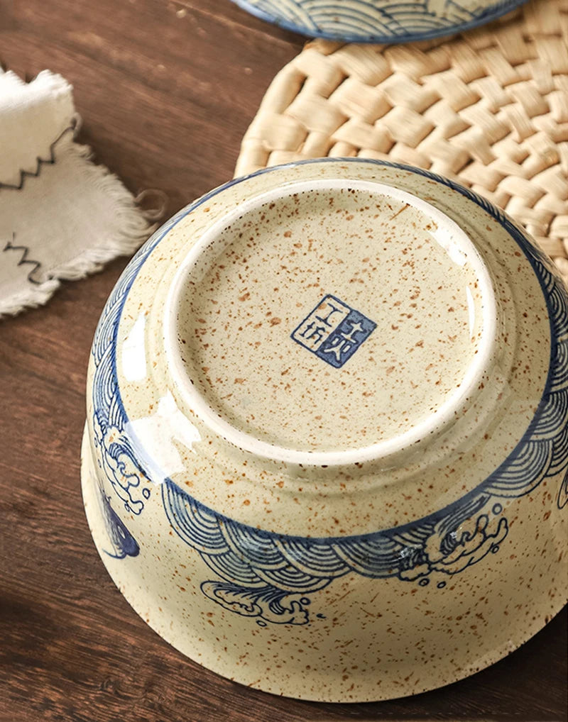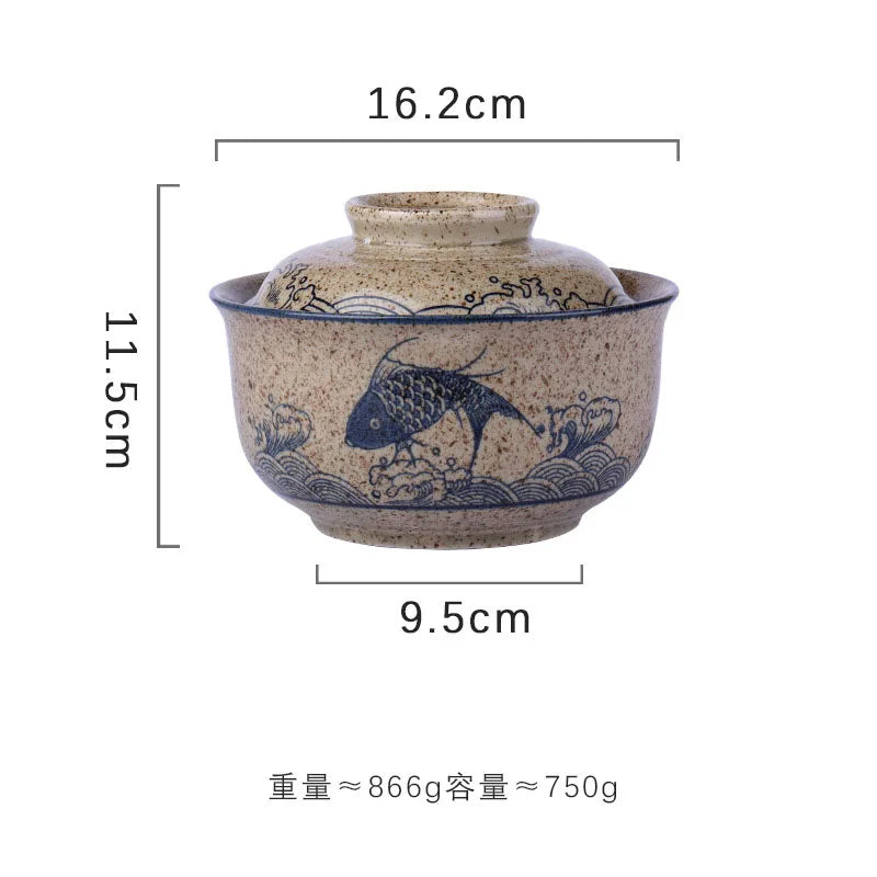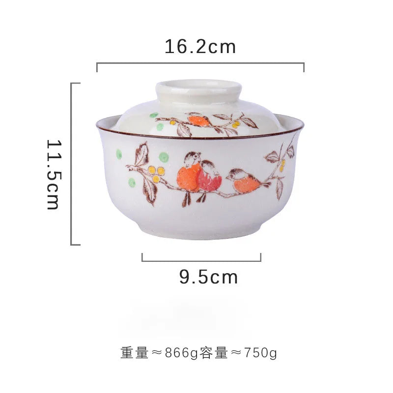 - Stil: retro keramikestetik med dekorativa motiv, lämplig för vardagligt porslin